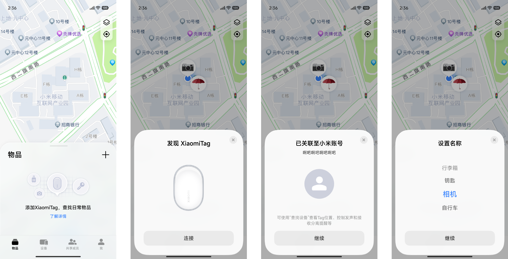 - 保持小米手机亮屏,将自动弹出Xiaomi Tag配对弹窗,若未收到弹窗,也可打开“查找设备”App,在物品 > 添加 主动搜索发现。