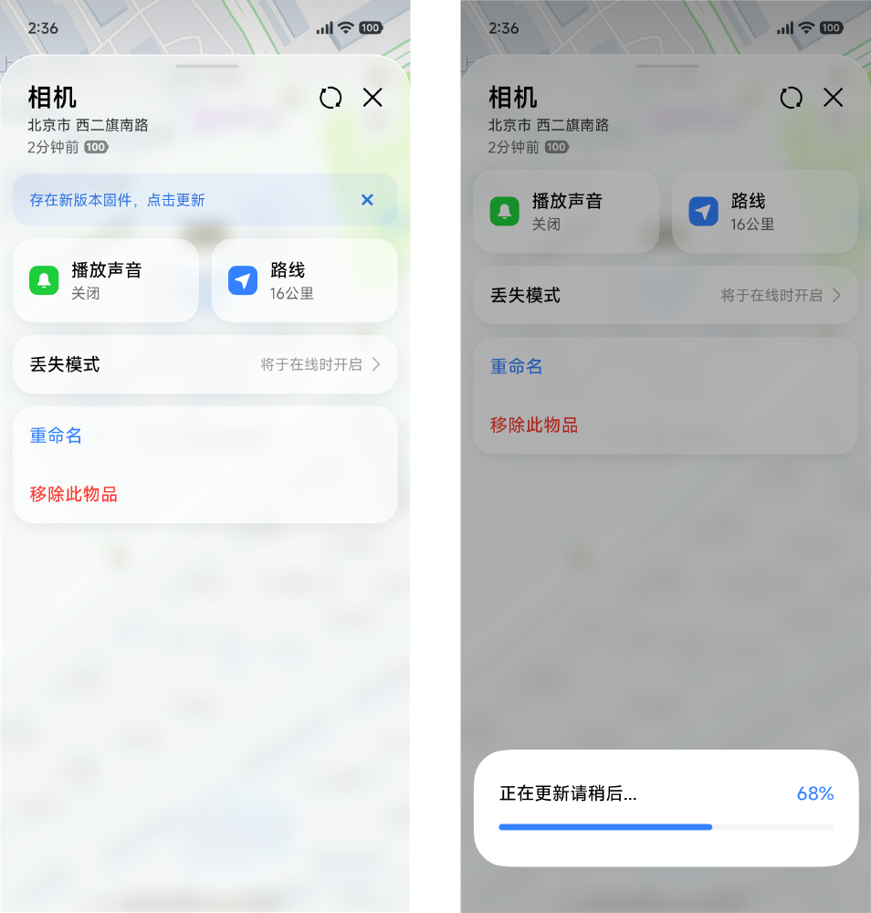 当您的Tag固件有新版本时,我们将提醒您进行升级以获得最新体验。升级过程中,请保持手机与Xiaomi Tag连接。